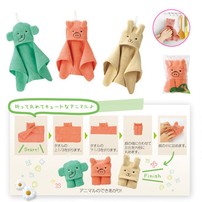 フックに掛けるとキュート!便利なマイクロファイバータオル。