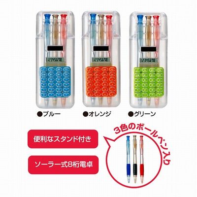 ソーラー電卓ケース入り 3色ペンの販促品をお探しなら販促グッズネットへ